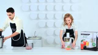 Удобная ручка для переноски соковыжималки заметно повышает мобильность прибора. Рабочие характеристики у модели такие же, как у многих в этом тесте. Сок легко отжимается из самых разных продуктов. Жмых получается очень сухим. Низкая цена делает эту модель доступной для большинства потребителей.